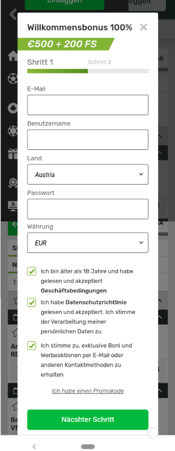 Die Campobet Anmeldung ist schnell und einfach. Klicken Sie auf die Schaltfläche «Registrieren» und gehen Sie die beiden Schritte durch und geben dabei die relevanten Daten ein und setzen die Haken nach Ihren Vorlieben. Sobald Sie eich angemeldet haben, können Sie direkt loslegen. Sobald Sie sich anmelden, werden Ihre Standortdaten übertragen und das Land auf «Schweiz» gestellt. Probieren Sie es aus und vergessen Sie nicht, ein sicheres Passwort zu wählen, um Ihr Konto optimal zu schützen.