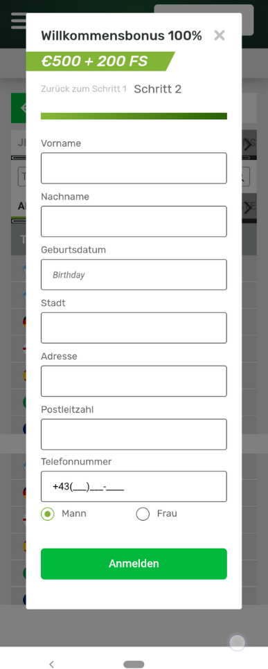 Bonusbedingungen  5x Einzahlung + 5x Bonus, min. Quote 2,00 (Einzelwetten)